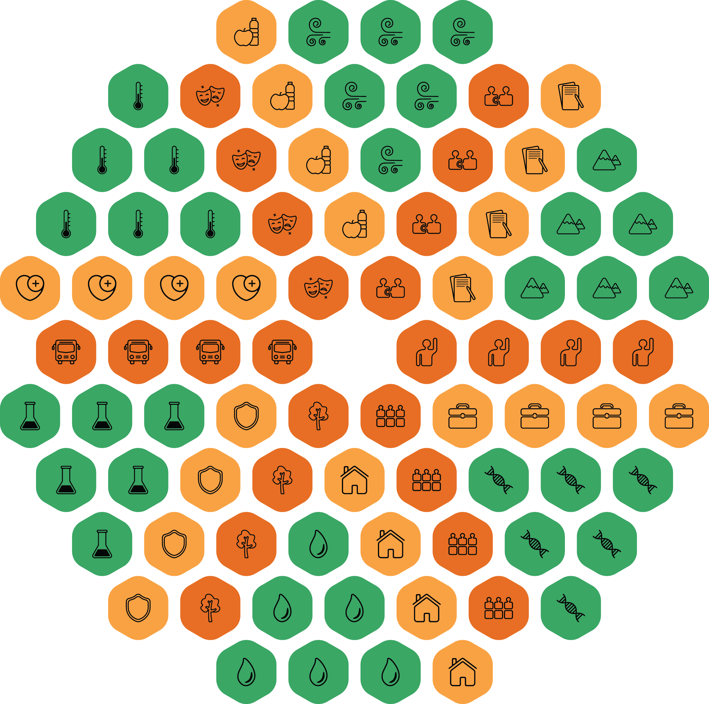Para Bee Desginer una ciudad perfecta debería poder satisfacer las necesidades de bienestar de todos sus individuos a la vez que respete los límites impuestos por la naturaleza. Es por eso que hemos creado un modelo que integra todos los elementos que consideramos más importantes para poder lograr este objetivo.